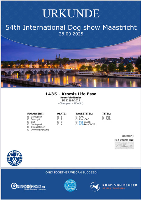 Ausstellungsergebnisse ​​​​54th International Dog Show Maastricht 28.09.2025