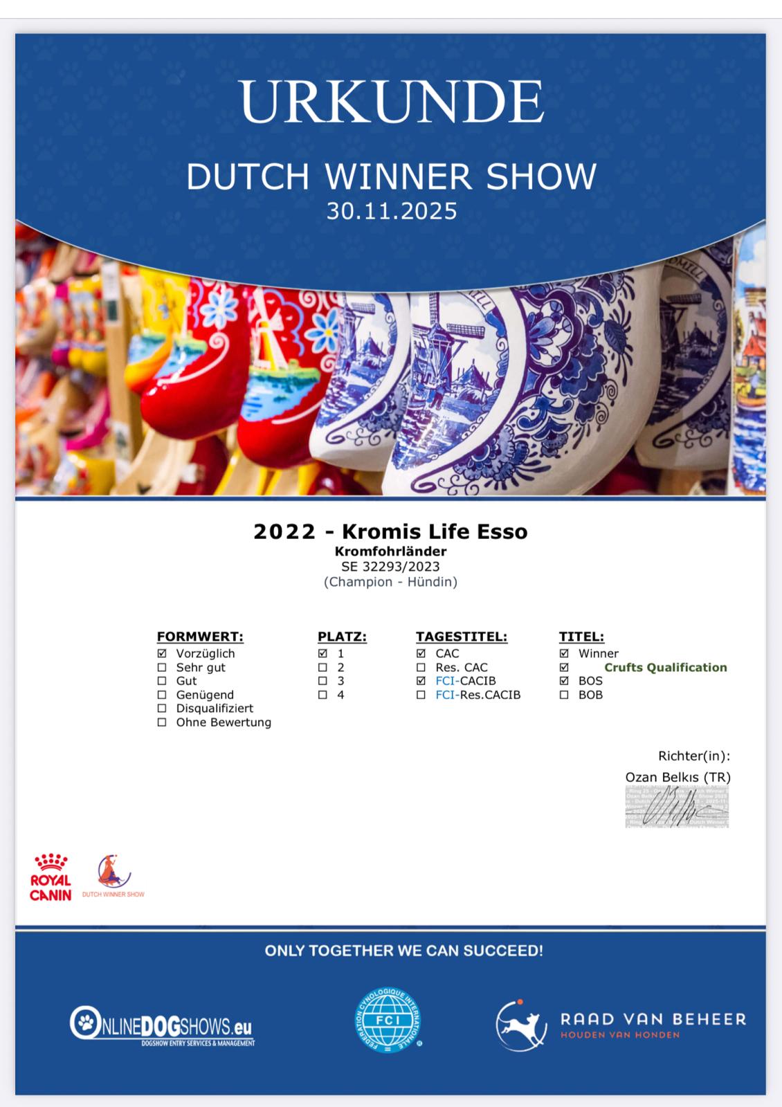 Kromis Life Esso: V1, FCI-CACIB, CAC, Winner,